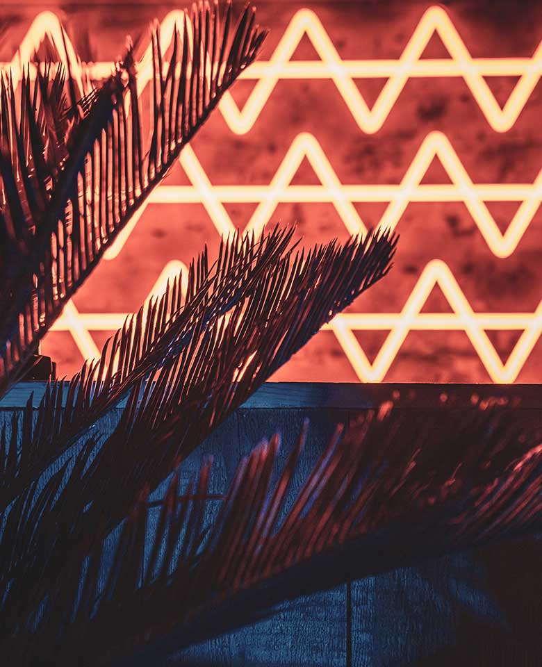 After dinner, descend into our vibrant downstairs lounge, featuring a curated selection of music, evocative and ambient lighting, intimate seating areas, and natural accents along an impressive 24-foot bar. The ambience pulsates with heat and energy, an environment where every person is meant to experience their senses in the present moment and connect with each other's souls.