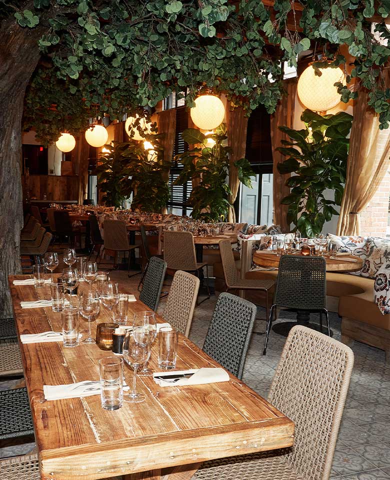 Ketchy Shuby is an inviting, sensorial experience. The idea of community is woven into every facet and detail, each coming together harmoniously; thoughtful design, carefully selected music, and the iridescent glow of warm lighting that emulates the beauty of a setting sun. The roots of nature envelop and embrace every corner of the space; a peaceful sanctuary without leaving the lively ambiance of SoHo, New York City.